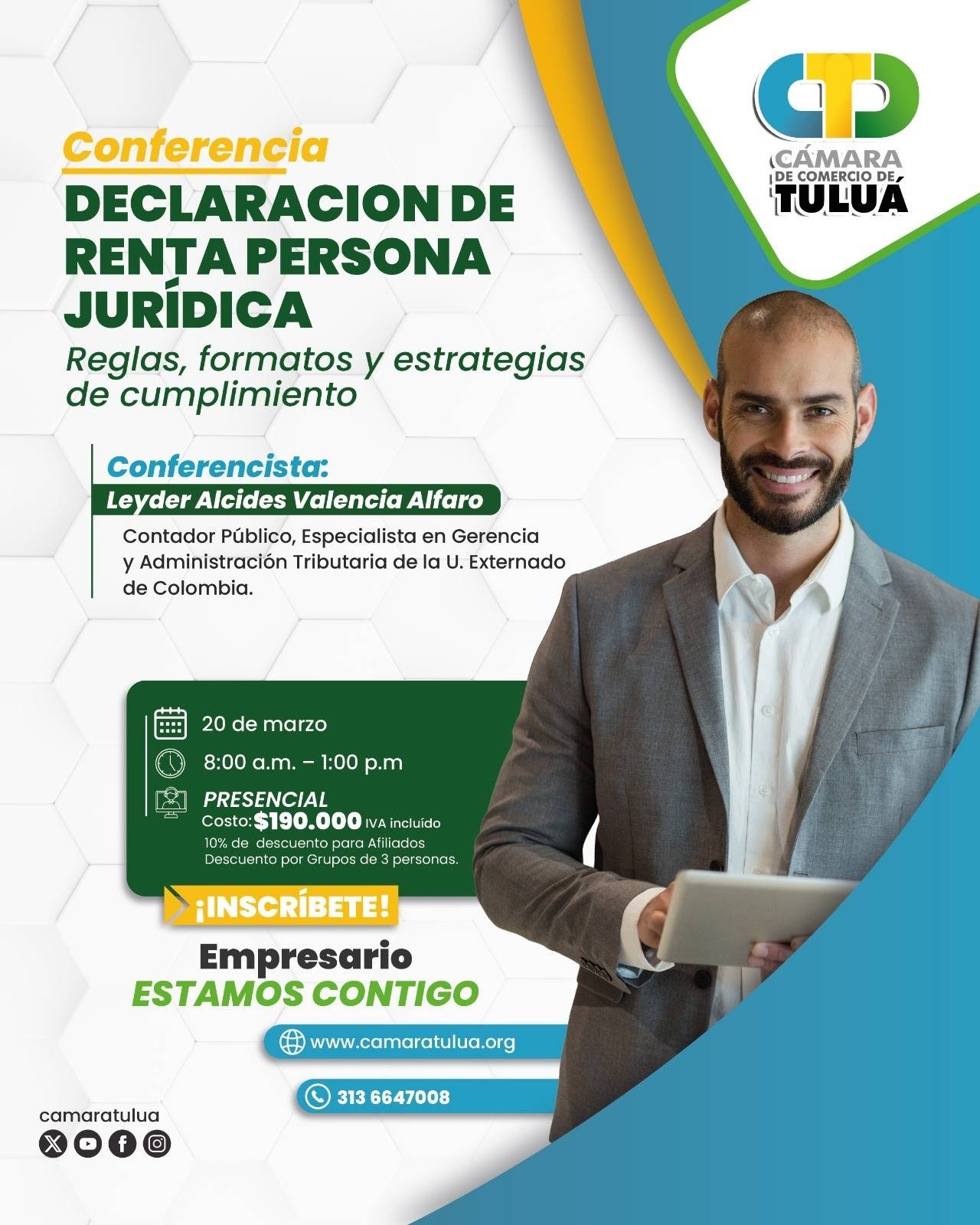 📍Modalidad presencial en el Auditorio de la Cámara de Comercio de Tuluá