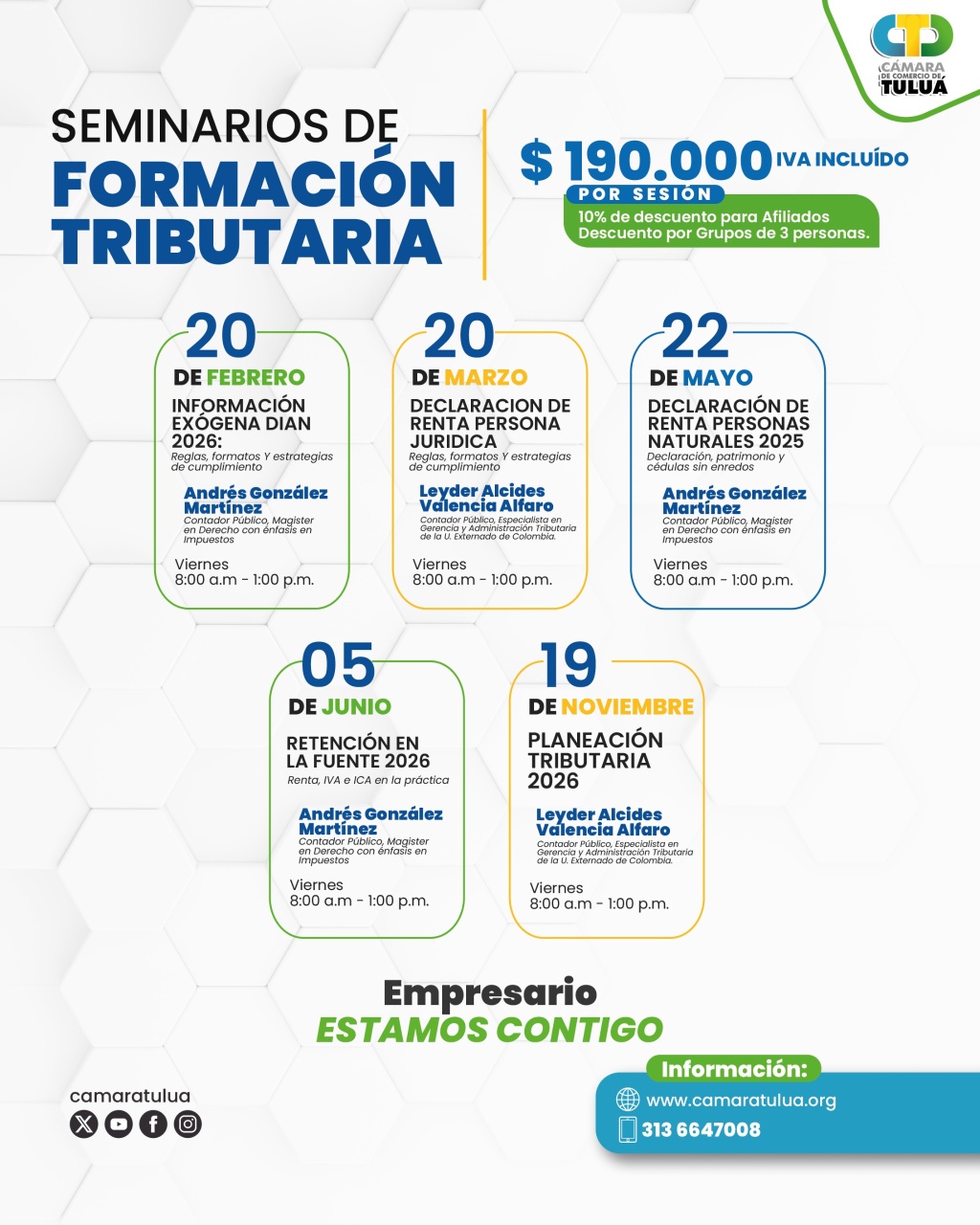 La Cámara de Comercio de Tuluá le invita a participar en una jornada práctica y estratégica donde conocerá todo lo necesario para cumplir correctamente con sus obligaciones tributarias y evitar sanciones.