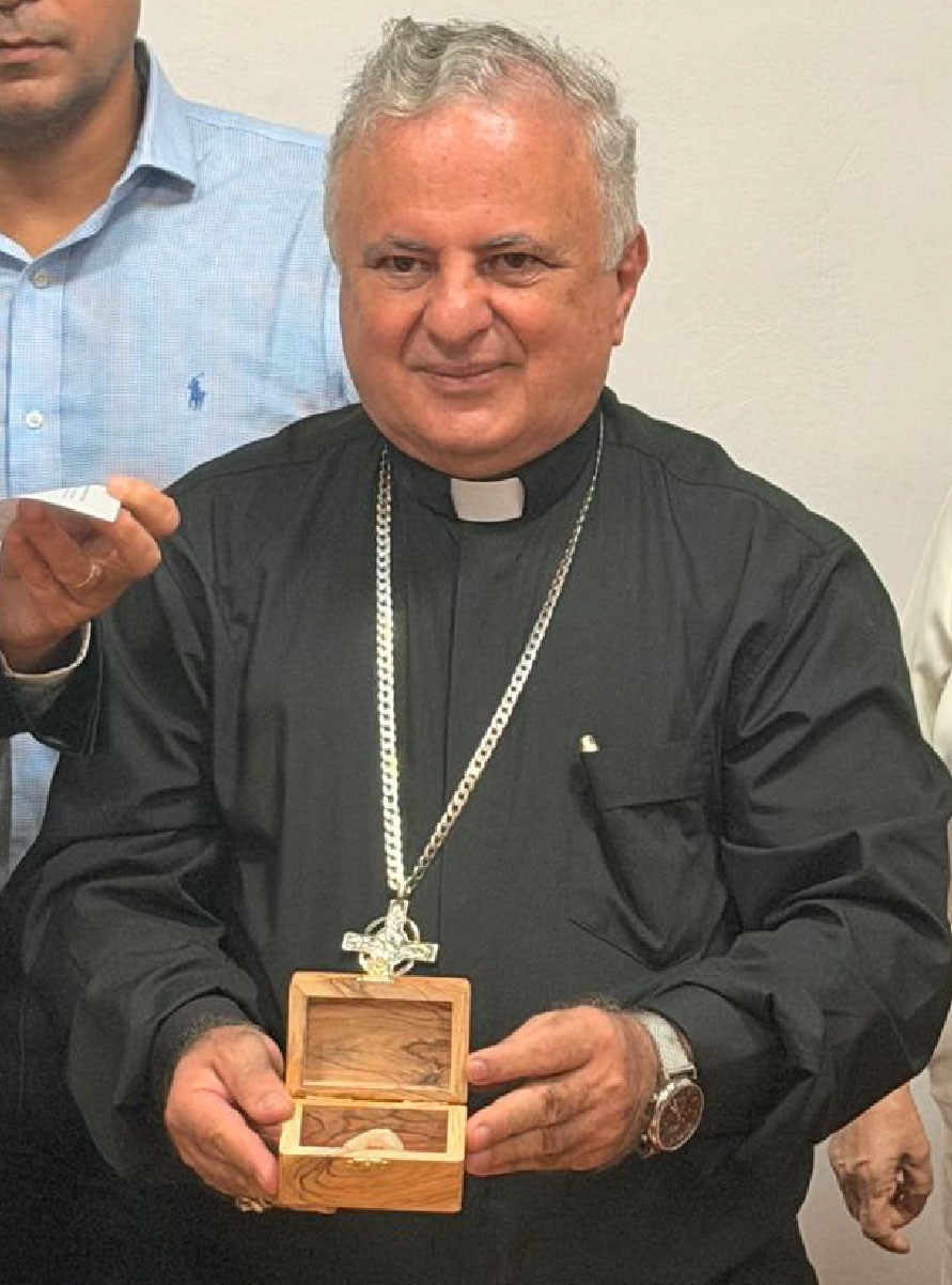 En la foto: Monseñor Alexander Matiz Atencio, Obispo de la Diócesis de Buga, recibiendo la piedra traída desde Tierra Santa.