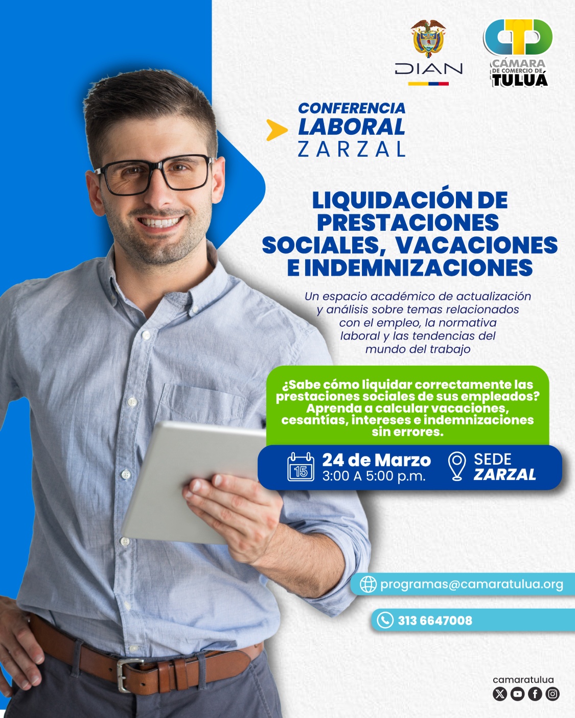 Te invitamos a la Conferencia Laboral en Zarzal, un espacio de actualización donde aprenderás a realizar estos cálculos correctamente y evitar errores en la gestión laboral de tu empresa.
