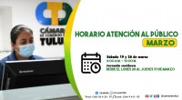 La Cámara de Comercio de Tuluá informa que EL HORARIO DE ATENCIÓN AL PÚBLICO en este mes de marzo de 2022 durante las JORNADAS DE RENOVACIÓN en la sede principal en Tuluá y la Oficina Receptora de Zarzal será de la siguiente manera: SÁBADOS 19 y 26 de marzo en horario de 8:00 a.m. A 12:00 m. Y Jornada Continua: Desde el lunes 28 al jueves 31 de marzo Dirección Administrativa y Financiera